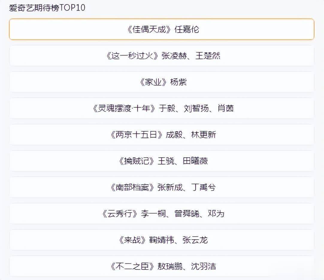 爱优腾期待榜:任嘉伦《佳偶天成》双平台登顶,你们期待哪部剧?可以在评论区留言!
